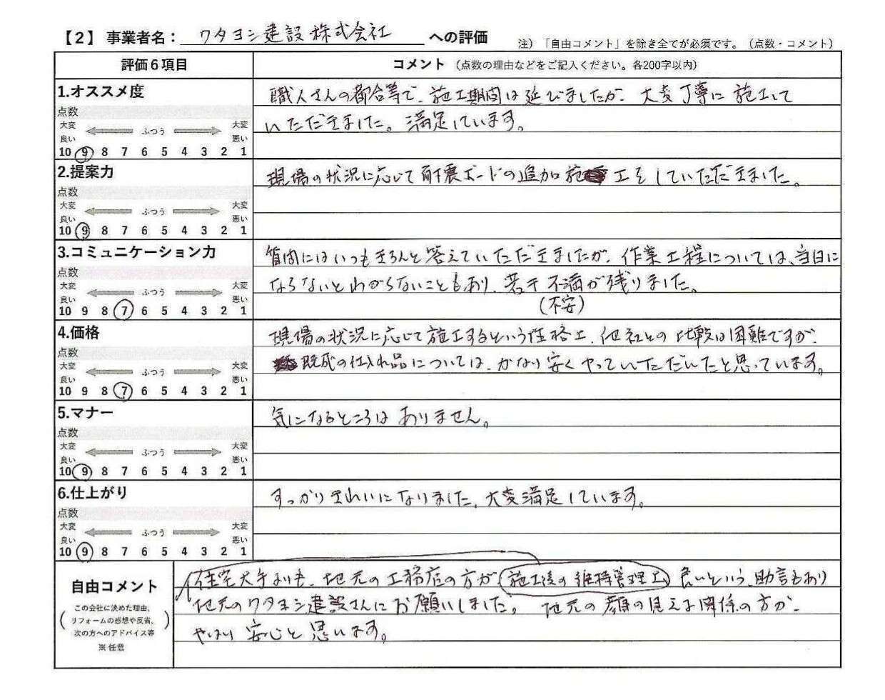 今回は、弊社にリフォームをご依頼いただいたお客様より、貴重なご意見・ご感想をいただきましたのでご紹介いたします。