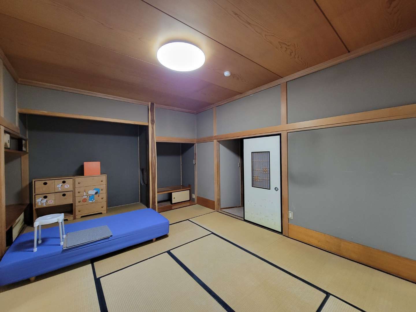 2. 新旧の調和を楽しむデザイン 築80年超の建物が持つ「趣」を大切にしました。特徴的な天井や、先代から受け継がれたタンスはそのまま残しつつ、新しい設備や内装と違和感なく調和するよう仕上げています。