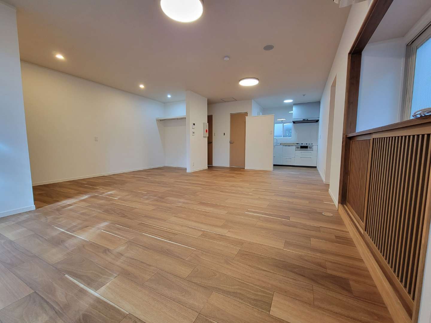 1. 続き間を解消した開放的なワンルーム設計 かつての続き間和室を、あえて建具で仕切らない「ワンルーム」に変更しました。リビングと個室の境界は天井からのカーテンで目隠しをする仕様にし、お一人様で過ごすのに十分かつ贅沢な広さを確保しています。