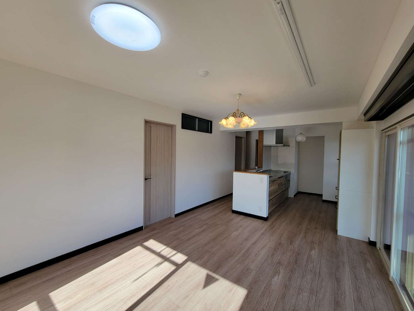 3. 明るいオープンキッチンと既存部分との調和 キッチンは壁付けからオープンタイプへ変更し、明るくスムーズに家事ができる空間へ。また、構造上撤去できなかった既存部分と新しい内装の色味を丁寧に合わせることで、新旧の違和感がない、一体感のある空間に仕上げています。